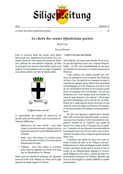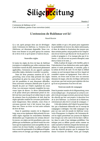 La Siligenzeitung est le journal du monde de Rakhmar. Dans chaque numéro, retrouvez des articles traitant du développement du jeu, de précisions de règles ou d'autres sujets en lien avec le jeu.