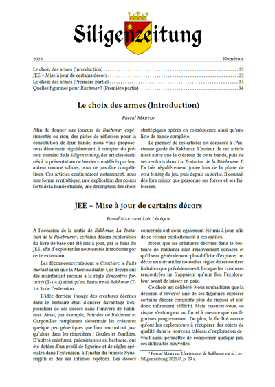 La Siligenzeitung est le journal du monde de Rakhmar. Dans chaque numéro, retrouvez des articles traitant du développement du jeu, de précisions de règles ou d'autres sujets en lien avec le jeu.